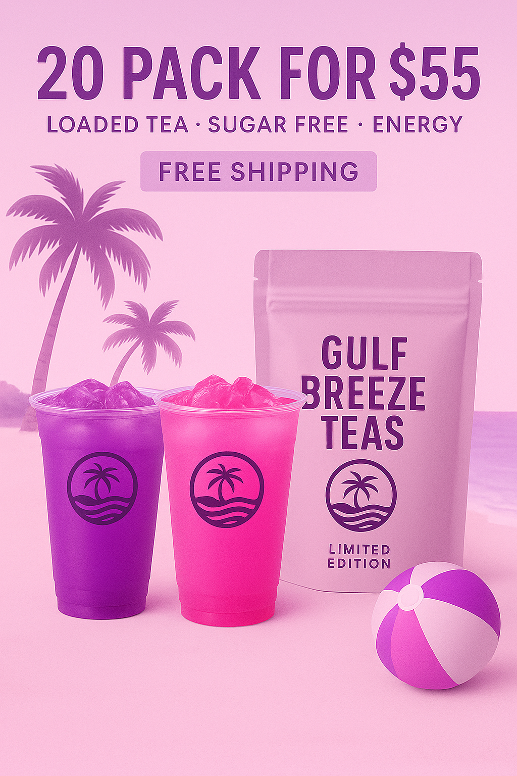 Our Gulf Breeze Teas come in a convenient, small, single-serving pouch—perfect for on-the-go hydration. Add water to create a refreshing, icy, loaded tea bursting with color, taste, and bold personality. Add a colorful straw and ice to enjoy an energizing drink that tastes like a sweet treat.